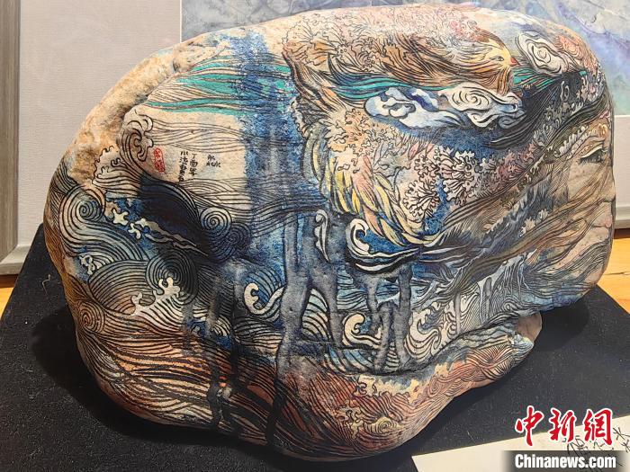 圖為魯婷創作的黃河石畫。中新網記者 烏婭娜 攝