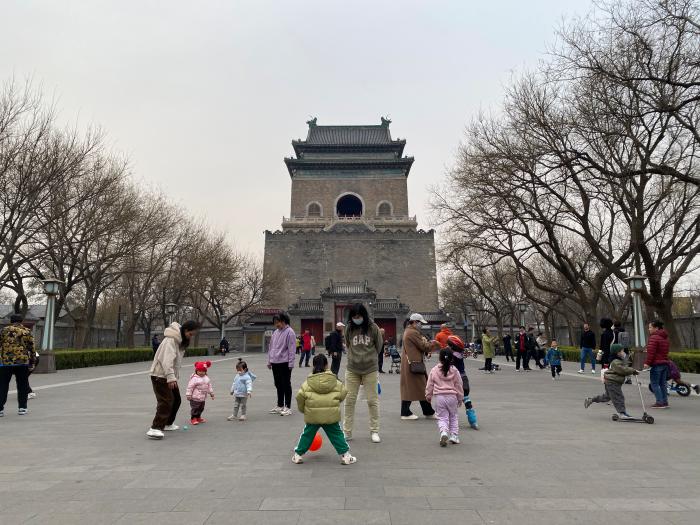 圖為市民在北京鐘鼓樓廣場游玩。中新社記者 陳杭 攝