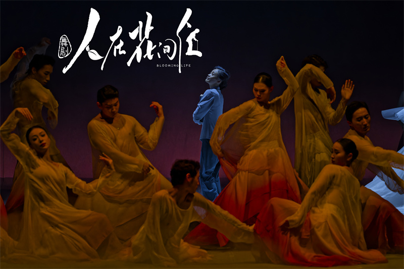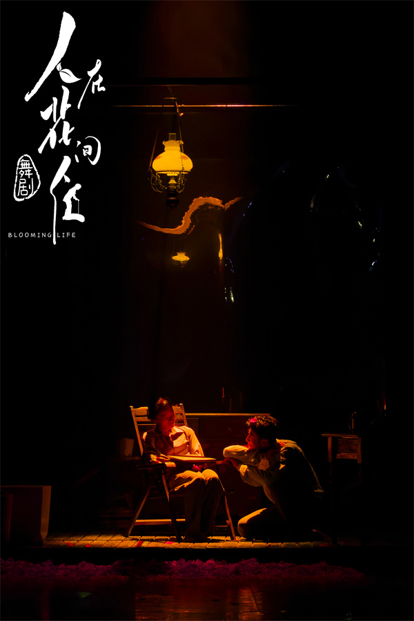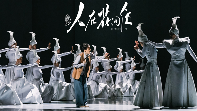 《人在花間住》的舞臺上并沒有實體的花,主創團隊最終以人擬花,以自由詩意的藝術手法開拓無盡的想象空間,用種種意象化處理邀請觀眾自己去描繪心中最美的“花”?!拔枧_上沒有花,但人就是花?!睂а葙M波說。當百花群舞翩躚而起,如花般絢爛的愛與生命便在舞臺上恣意綻放。