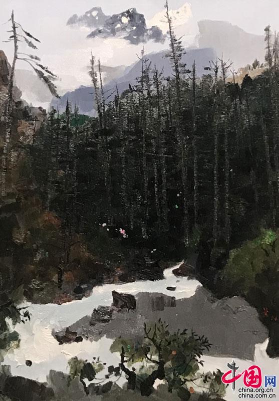 吳冠中 雨后玉龍山 油畫 攝影 中國網記者 蘇向東
