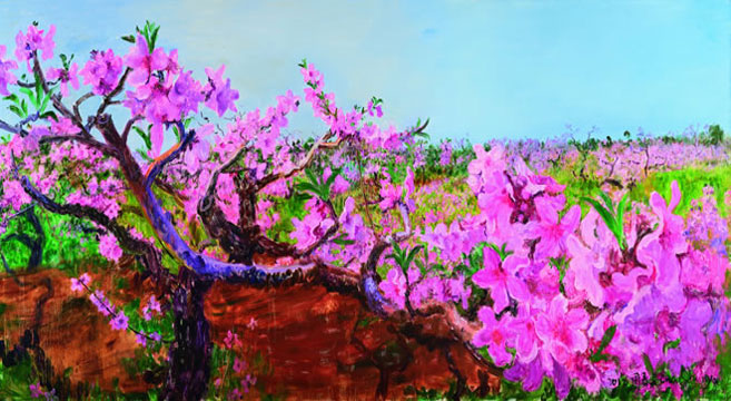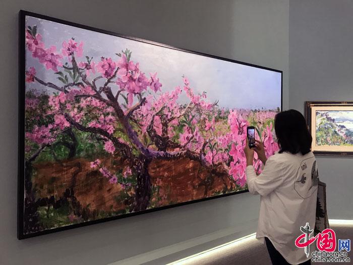 周春芽 錦霞千里 油畫 2012年 圖為預展現場 攝影 中國網記者 蘇向東