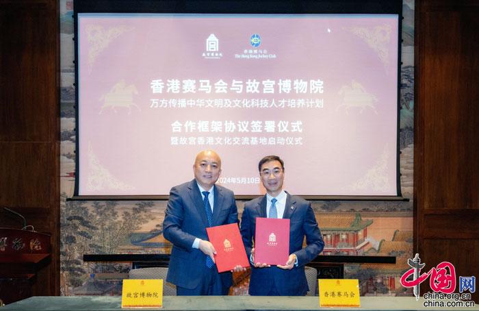 當天,由香港賽馬會和其慈善信托基金共同成立的公益慈善研究院捐資故宮博物院簽署合作框架協議儀式暨“故宮香港文化交流基地”啟動儀式在故宮博物院舉行。