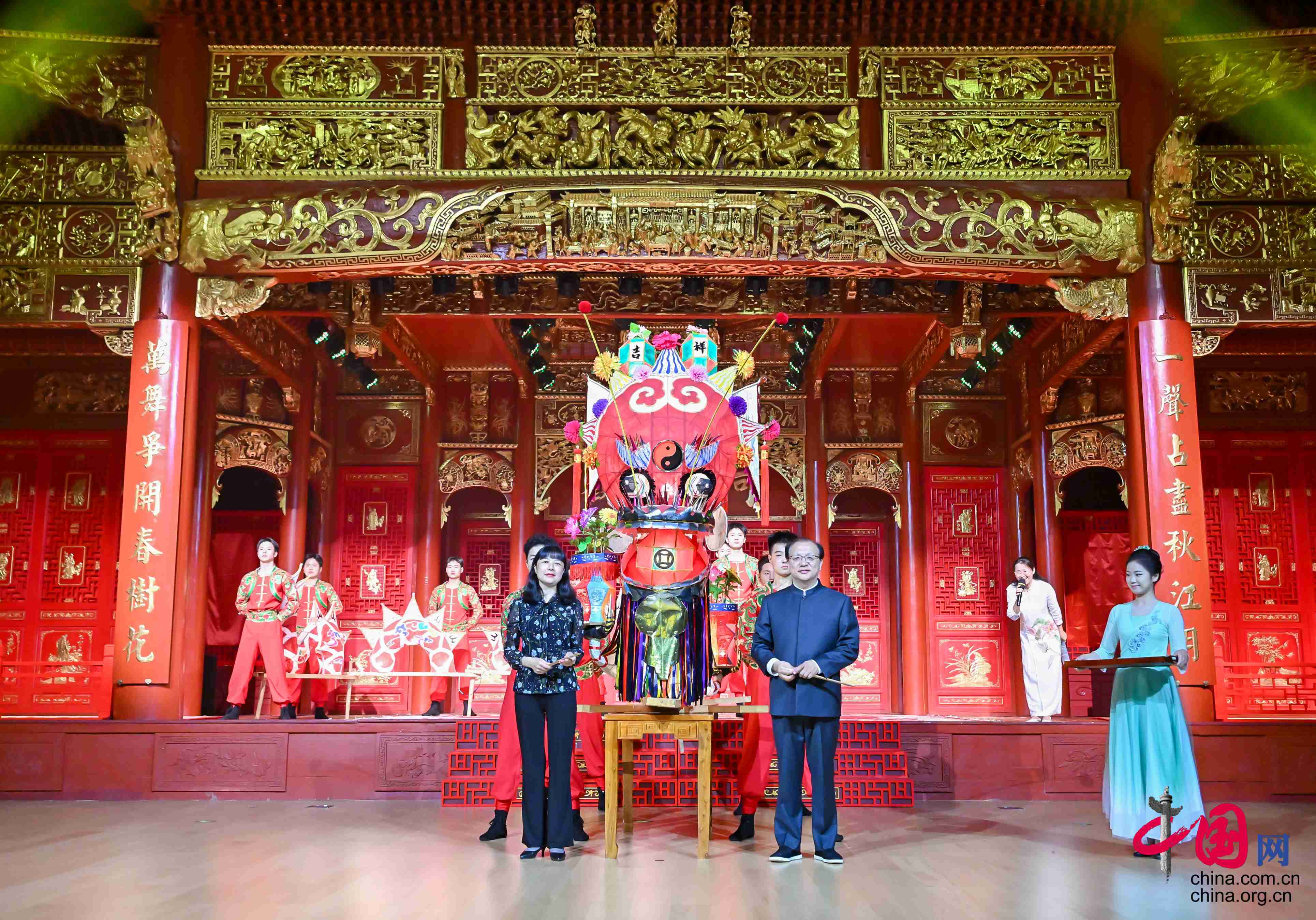 在活動現場,非遺展演將婺劇、龍舞(浦江板凳龍)、十八蝴蝶、金華道情等國家級非遺代表性項目和烏龜端茶、跳魁星等省級非遺代表性項目,以展演、情境、互動等方式,為觀眾呈現出一場流動的視覺盛宴。另外,義烏紅糖制作技藝、錫雕、婺州窯陶瓷燒制技藝、永康銅藝等非遺代表性項目的活態展示,串聯起《洞天福地 仙人舉巖》《金華是個好地方》《婺風遺韻 龍騰盛世》《一起來金華》等篇章。