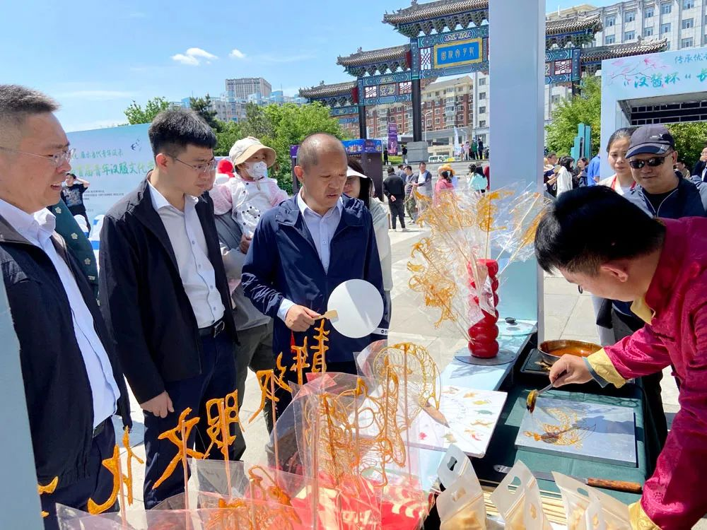 “你瞧!這里還有糖人!”在傳統非遺糖畫的展位前,游客早早就排起了長隊,孩子們拿著畫有各式圖樣的糖人雀躍不已。大家這里走走,那里逛逛,在收獲喜悅的同時,更是滿載而歸。