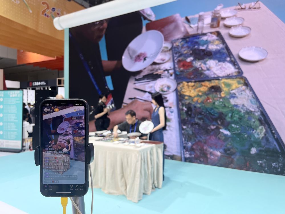 5月23日,藝術家洪米川在文博會現場展示瓷畫技藝。新華社記者 趙瑞希 攝