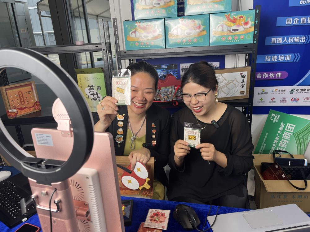 新華社深圳5月25日電(記者 趙瑞希)“3、2、1,上鏈接!”伴隨著主播喊出的這一聲,潮州大鑼鼓文創徽章、潮汕傳統建筑“四點金”拼裝模型、端午仲夏結愿創意掛飾、蹙金妃子繡花嚢DIY手工體驗套裝……一個個文創產品走進直播間。