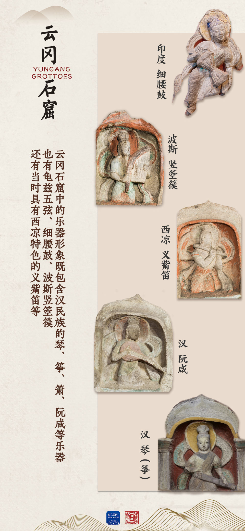 絲路漫漫,胡樂聲聲。根據相關統計,云岡石窟20余個洞窟500多件樂器造像中,胡樂器出現頻率非常高,對此后隋唐時期胡漢音樂的深度融合起到開拓奠基作用。