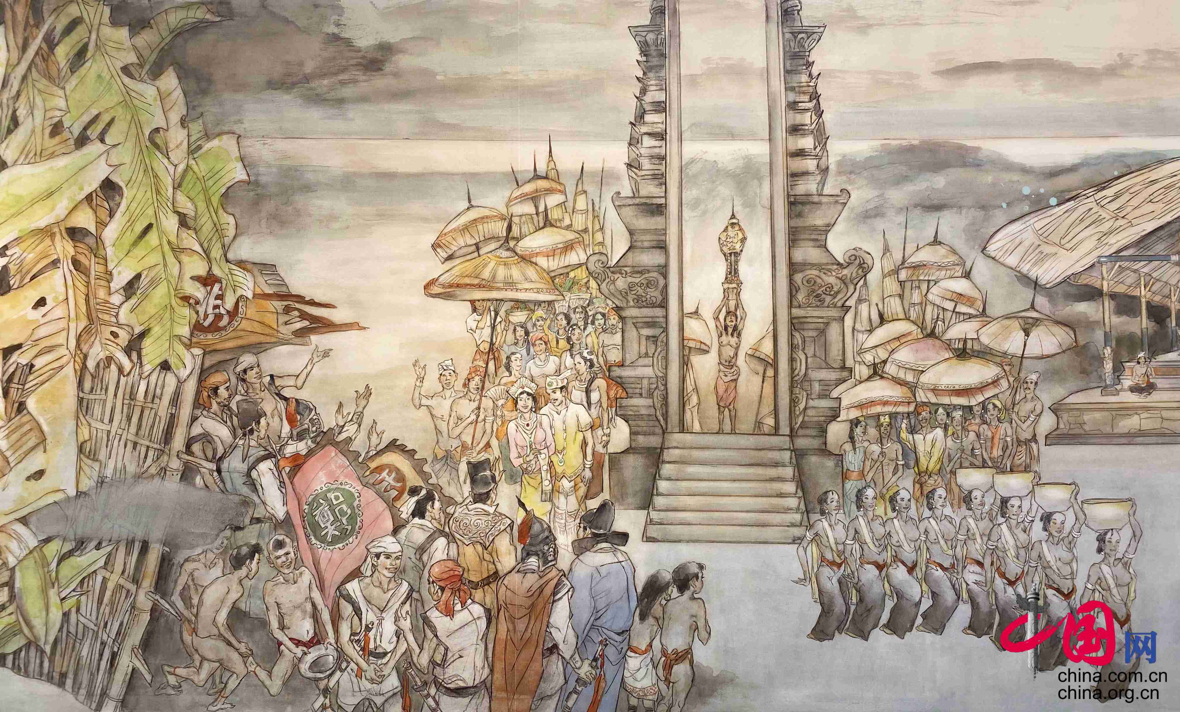 300余個場景、1.7萬余個人物、歷時13年創作……日前,500米長卷中國畫《鄭和下西洋》在中國華僑歷史博物館舉辦北京首展,以鄭和航海故事為主線,再現那段文明交融的中外交往圖像。著名畫家、《鄭和下西洋》創作者鐘開天在采訪中表示,鄭和下西洋厚植中華民族崇尚友好和平的文化基因,昭示著世界走向和平共榮的愿景,今后作品將登上國際舞臺面向海內外觀眾講述中國故事、展示中國氣派、傳播中華文化,帶給人們關于這段歷史的現實思考與精神啟迪。