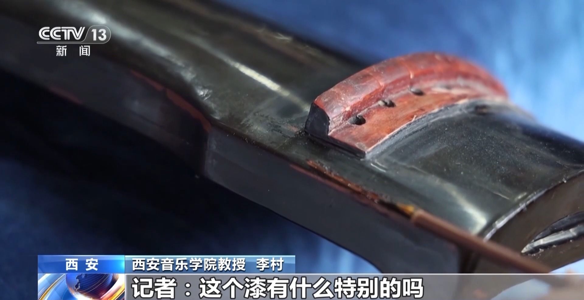 西安音樂學院教授 李村:這個是咱們傳統的大漆,野生土漆,和現在的這個化學用漆是不一樣的,是純天然的。