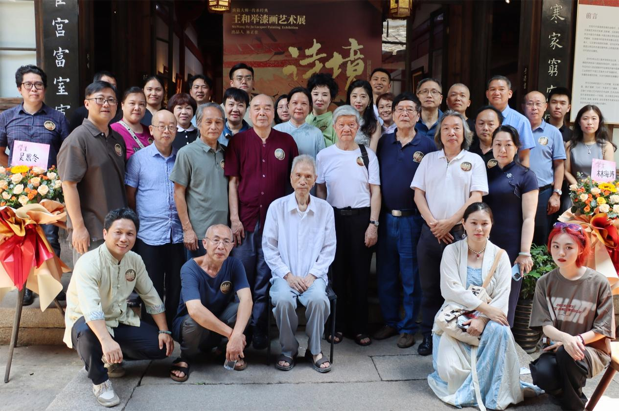 2024年7月16日,“王和舉漆畫藝術展·詩境”在沈紹安漆藝博物館拉開帷幕。這不僅是王和舉先生從藝七十余年的首次個展,更是對其藝術生涯的全面回顧,是一次關于時間、記憶與傳承的深刻對話?;顒蝇F場高朋滿座,國內外眾多藝術家、院校學者、業內專家以及媒體朋友共同見證啟幕活動。