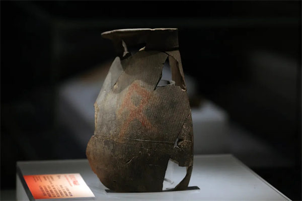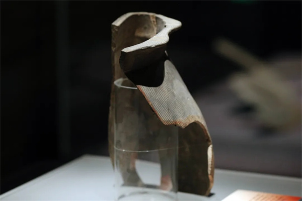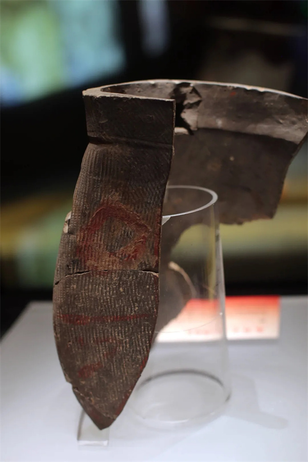 這種灰陶汲水器,在陶寺遺址是非常普通的日常用器,它的口部和腹部均呈一面鼓凸、另一面扁平或微凹的形狀,以便于打水時水流入。但這件殘破的陶扁壺上,有用朱砂書寫的文字,文字有筆鋒,似為毛筆類工具所書,這足以改寫中國文字歷史。