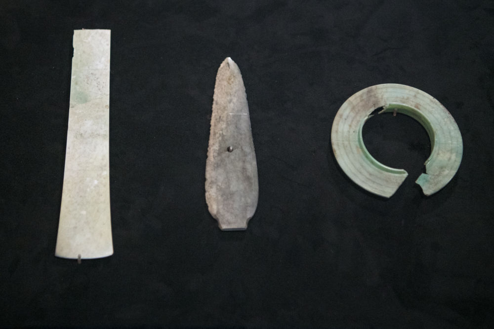 這是在四川省廣漢市拍攝的三星堆遺址發掘區出土的玉器(2024年7月21日攝)。新華社記者 唐文豪 攝