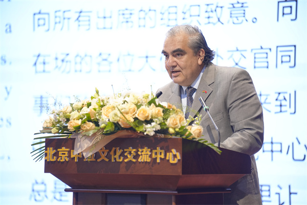 ▲玻利維亞駐華大使烏戈·西萊斯發表致辭