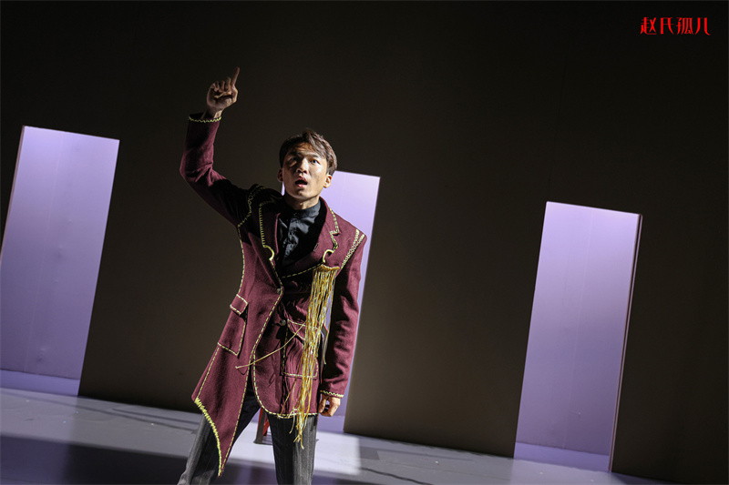 該劇是從北京人藝2022年度青年演員藝術考核中“孵化”成功的劇目,前不久北京人藝72周年的院慶直播活動中,曾經展示過幾位青年演員在考核中演出的創意片斷,也收獲了彈幕中的一片贊譽??梢哉f,構成這部劇成功的元素,更多的是青春的創造力和生命力?!把莩龅桥_的意義,就像運動員上場打比賽?!睂а莺伪J為,只有通過不斷的舞臺實踐,才能夠讓所有的戲劇觀念更加清晰,對人物和劇情的解釋也更加豐富。此次二輪上演,青年演員們再次錘煉,“在舞臺上認真、誠懇、努力”是劇組堅持的創作態度。金漢飾演的程嬰,用“愛的驅使”演繹復雜的人物矛盾;周帥飾演的屠岸賈,以情感和溫度打破反面人物的冰冷。先后登場的眾多角色,每個都具有豐富的心理活動和行為動機,他們之間的相互作用如同齒輪轉動,緊緊地咬合在一起,推動情節發展,共同成就了這部劇的精彩。