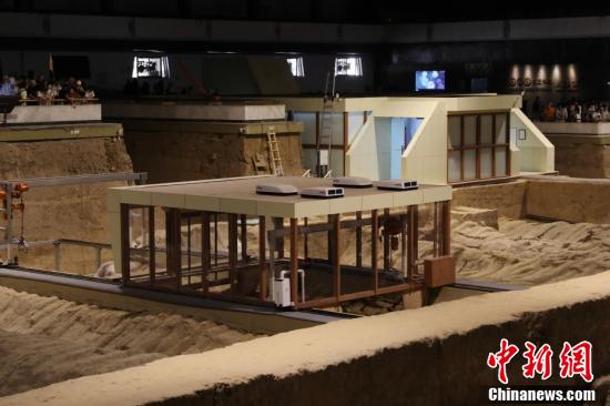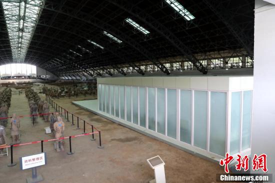 9月8日,“秦兵馬俑考古發掘50周年暨秦始皇陵大遺址保護研究國際會議”在西安召開,大會發布了秦兵馬俑一、二號坑現場應急保護實驗艙及考古現場發掘與保護平臺建設成果。該實驗艙和平臺于近日建成,為考古現場發掘與文物保護提供了實驗分析與修復、環境監測與調控等能力保障,保障文物從出土環境向文物庫房保存環境的平穩過渡,開創了秦兵馬俑考古發掘及文物保護的新方法、新模式。圖為兵馬俑一號坑內的現場應急保護實驗艙。