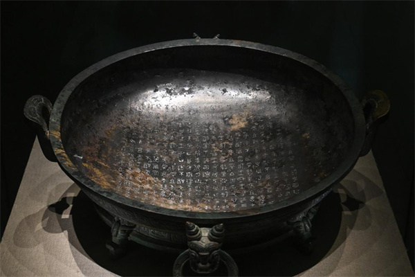 近日,游客在寶雞青銅器博物院參觀何尊。新華社記者鄒競一攝