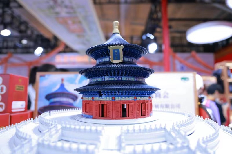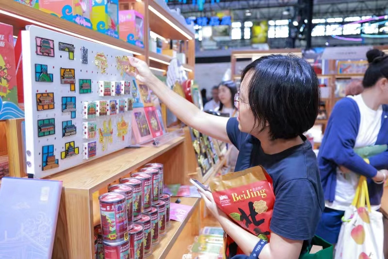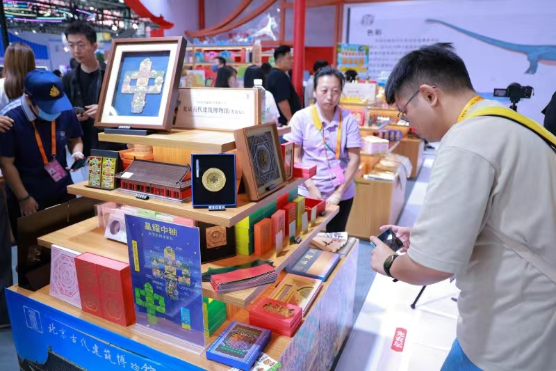 開展首日,現場最引人矚目的當屬“北京中軸線文化主題展區”,先農壇、天壇、故宮、景山、鐘鼓樓等多個遺產點的文創精品“京味兒”十足。北京中軸線主題郵局、騰訊SSV數字文化實驗室、全聚德中軸食禮等新興文化體驗驚喜多多。琳瑯滿目的中軸線文創涵蓋了從美食、文具,到飾品、藝術品等各領域,展區現場還結合新穎化展陳、數字化大屏、創意化時空艙以及多元體驗活動,形成從影音視聽、遺產展示、文創開發、中軸光影、申遺回顧、主題活動、科技創新到直播互動的綜合文化體驗空間,一站式呈現古今相通、虛實交織的北京中軸線特色成果。