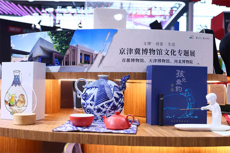 “京津冀文博文創專題展區”中,首都博物館等北京地區重點博物館,與天津博物館和河北博物院首次組團亮相,展柜設計突出三地相互融合、相互支撐的概念,展示的300余件最具代表性的文創產品也體現了京津冀在文博領域協同發展成果?!坝续P來儀系列”“福壽文化系列”“玉壺春系列”“博山爐系列”等產品美不勝收,公眾可以在專題展區內體驗一站式集齊“鎮館”文創的樂趣。