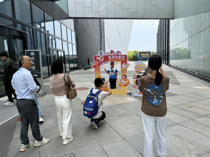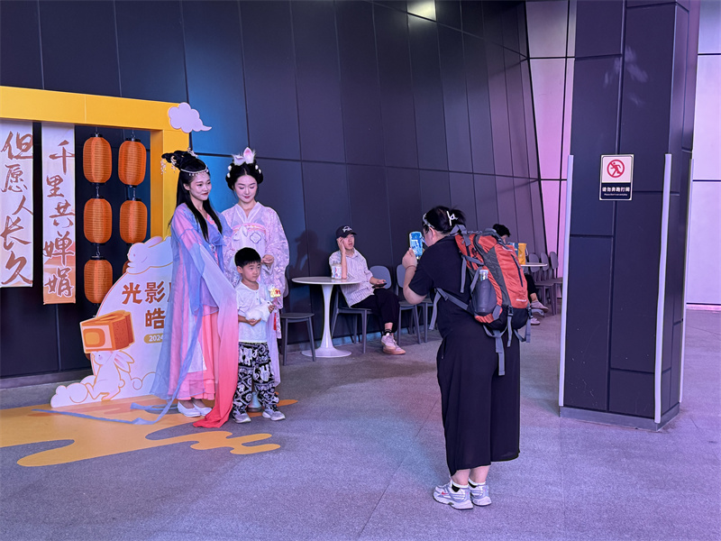 節日期間,中國電影博物館的中央圓廳內持續播放中秋主題視頻。通過現代科技手段,將中秋的傳統元素與現代視覺藝術相結合,為觀眾們帶來了一場視覺與心靈的雙重享受。觀眾們在觀看視頻的同時,對中秋文化有了更深入的了解和認識。