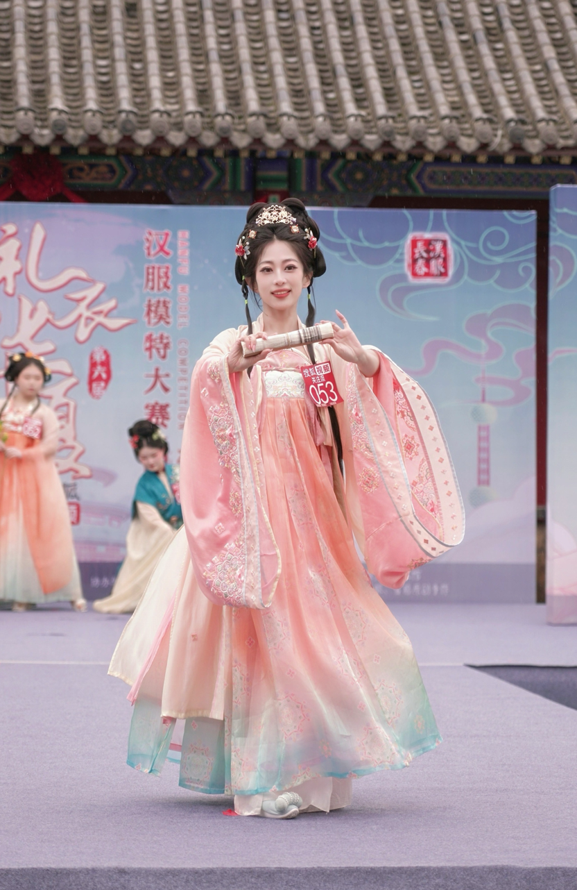 靈動、端莊、時尚、帥氣,在悠揚悅耳的古樂聲中,比賽開始了。選手們充滿自信和活力,展現著青年人積極向上的精神面貌。她們身著各式漢服,從秦漢的樸素典雅到大唐的華麗繁復,再到宋明的精致考究,每一件服飾都仿佛穿越了時空,展示著源遠流長、博大精深的中華文明。