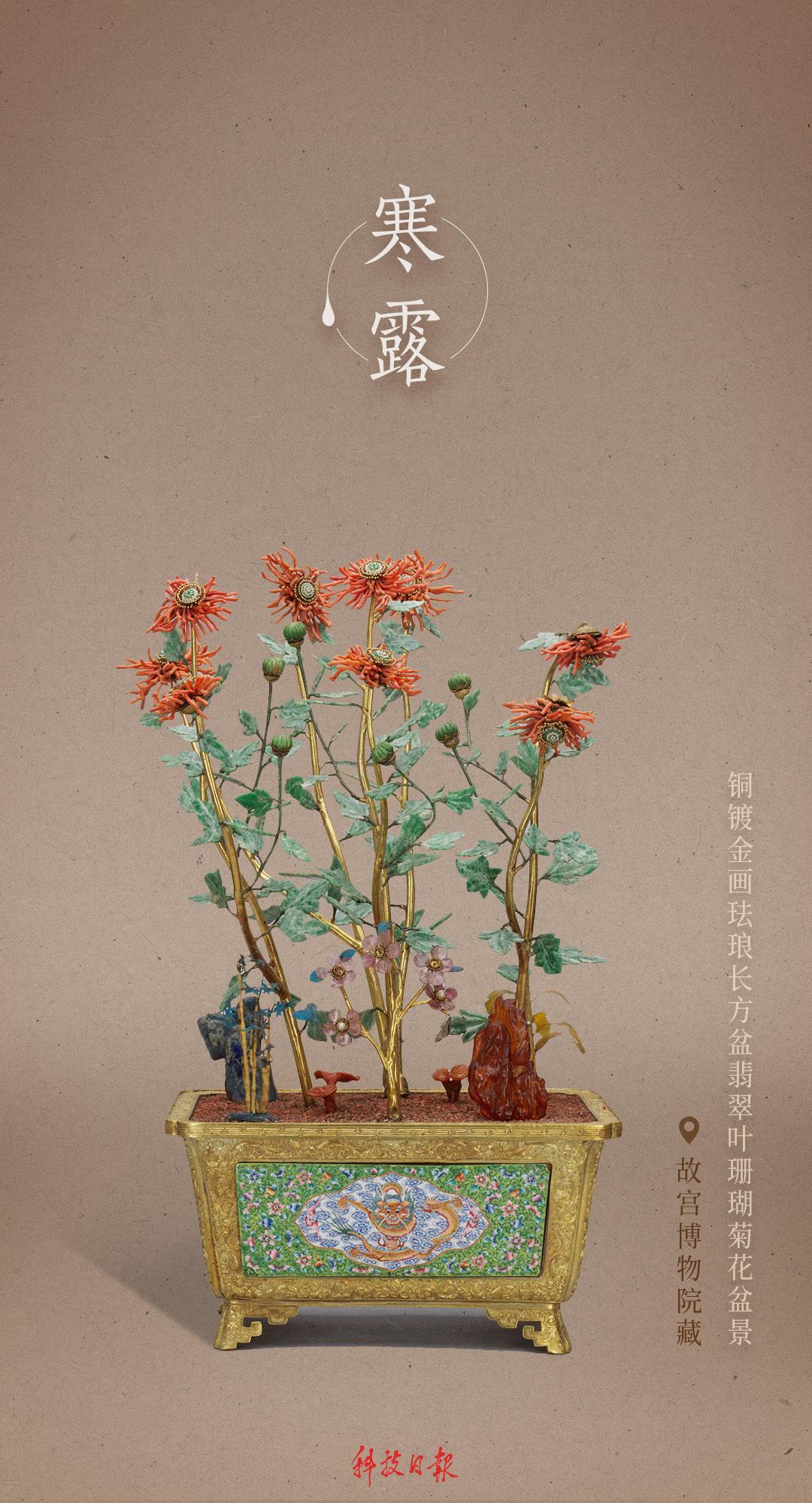 “不是花中偏愛菊,此花開盡更無花”,在修復師們的巧手之下,玉石菊花盆景如同深沉靜逸的宮殿照進的一簇陽光,將秋天的艷麗留存于四季、留存于時光。