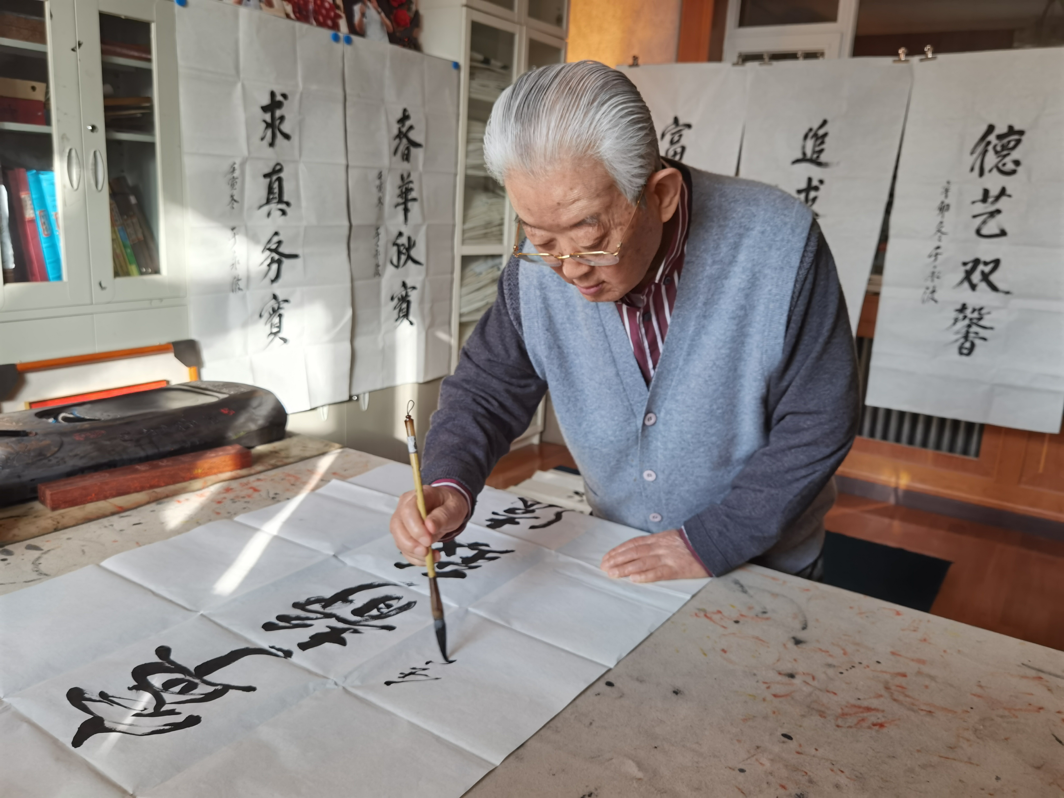 值得一提的是,收進這本書法集的不少作品,是作者在近期內完成的。為了將書法作品匯集成為一份讓歷史告訴未來和學習前人、總結自己、留給后人的紀念與記錄,已進入鮐背之年的作者,克服年事已高的不便,冒著酷暑嚴寒創作書法作品,有時一天竟書寫六七幅。所有這些,讓人們對這位老領導、老將軍的思想風范與革命精神油然而生敬意。