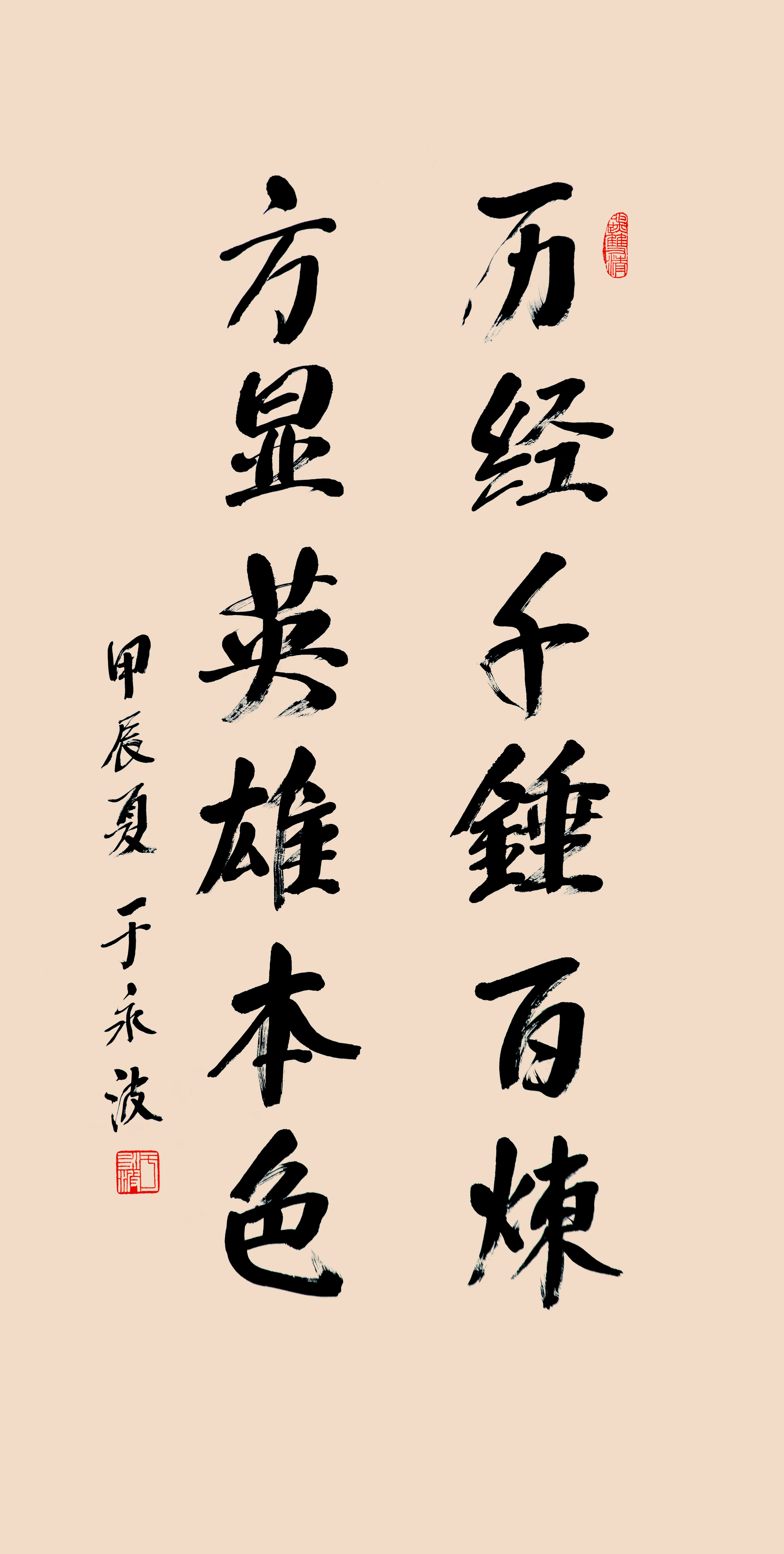 于永波上將曾任中央軍委委員、中國人民解放軍總政治部主任,是我軍最高政治機關的領導者。他未及弱冠就攜筆從戎,投身革命,在解放戰爭的征程中,橫戈馳騁,征戰南北,不畏艱險,九死一生。新中國成立后,他雄赳赳,氣昂昂,跨過鴨綠江,在與美帝國主義的殊死較量中,經受了血與火的戰斗洗禮和生與死的嚴峻考驗。和平年代,他從基層到機關,從部隊到總部,從實踐到理論,積累了豐富的思想政治工作經驗,為我軍思想政治工作的創新發展做出重要貢獻。離開領導崗位后,他不忘初心,老驥伏櫪,以其自幼喜愛擅長的書法藝術,抒發對黨和人民的無限忠誠,對軍隊一如既往的摯愛,對崢嶸歲月的回顧思索,對改革開放的禮贊暢想,對強軍之路的謳歌展望,傳遞出皓首丹心的正能量,為社會繼續提供優質的思想和精神產品。