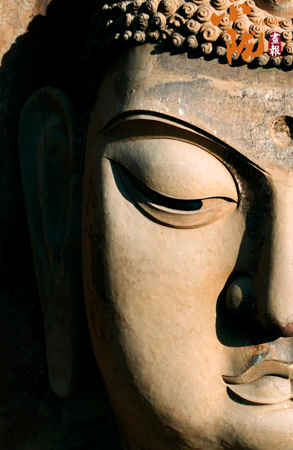 這尊美到極致的佛像,造像面相橢圓飽滿,斜眉吊目,懸鼻小口,面部慈悲而莊嚴,嫻靜而寬容、矜持且淡然,服飾簡潔、質樸,寬博厚重,極富質感。神秘的微笑中,是一種無念無掛的大自由狀態,微閉的眼睛帶有一絲含蓄,內斂的神情隱藏著一份自信。