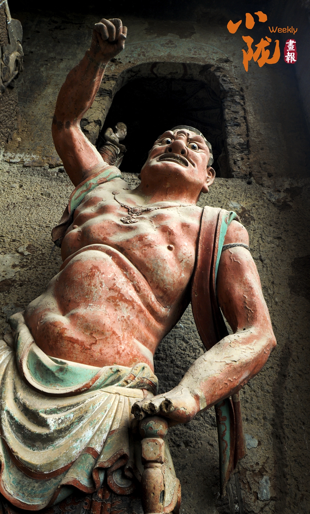 麥積山的塑像,除早期作品外,從北魏開始,幾乎所有的佛像都是俯首下視的體態,有和藹可親的面容,并且面帶微笑。雖為佛祖,卻像世俗的人,是人們美好愿望的化身。