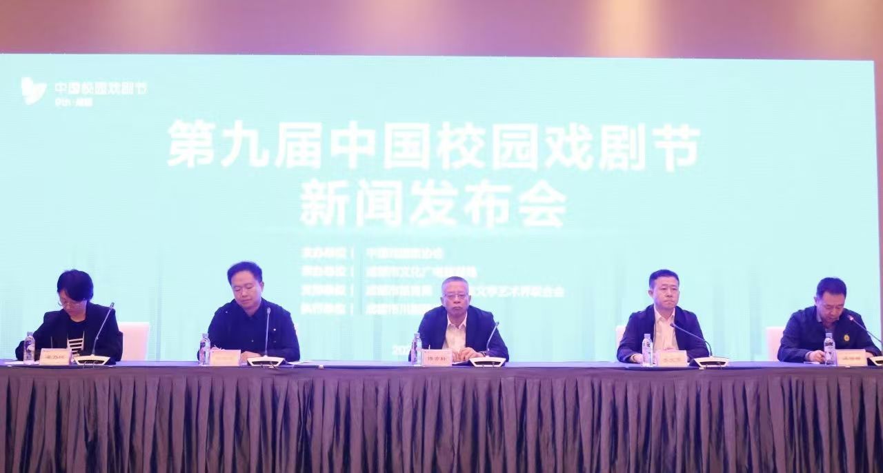 10月17日上午,第九屆中國校園戲劇節新聞發布會在成都舉行,發布會介紹了本屆校園戲劇節劇目征集和遴選情況及工作籌備情況。中國劇協分黨組副書記、秘書長傅亦軒,成都市文化廣電旅游局副局長李天昊,成都市川劇研究院院長蔣明睿出席發布會。發布會由中國劇協辦公室主任安添澤主持。11月12日至22日,第九屆中國校園戲劇節將在成都隆重舉行。本屆校園戲劇節由中國戲劇家協會主辦,由成都市文化廣電旅游局承辦,得到了成都市教育局、成都市文聯的大力支持,由成都市川劇研究院執行。