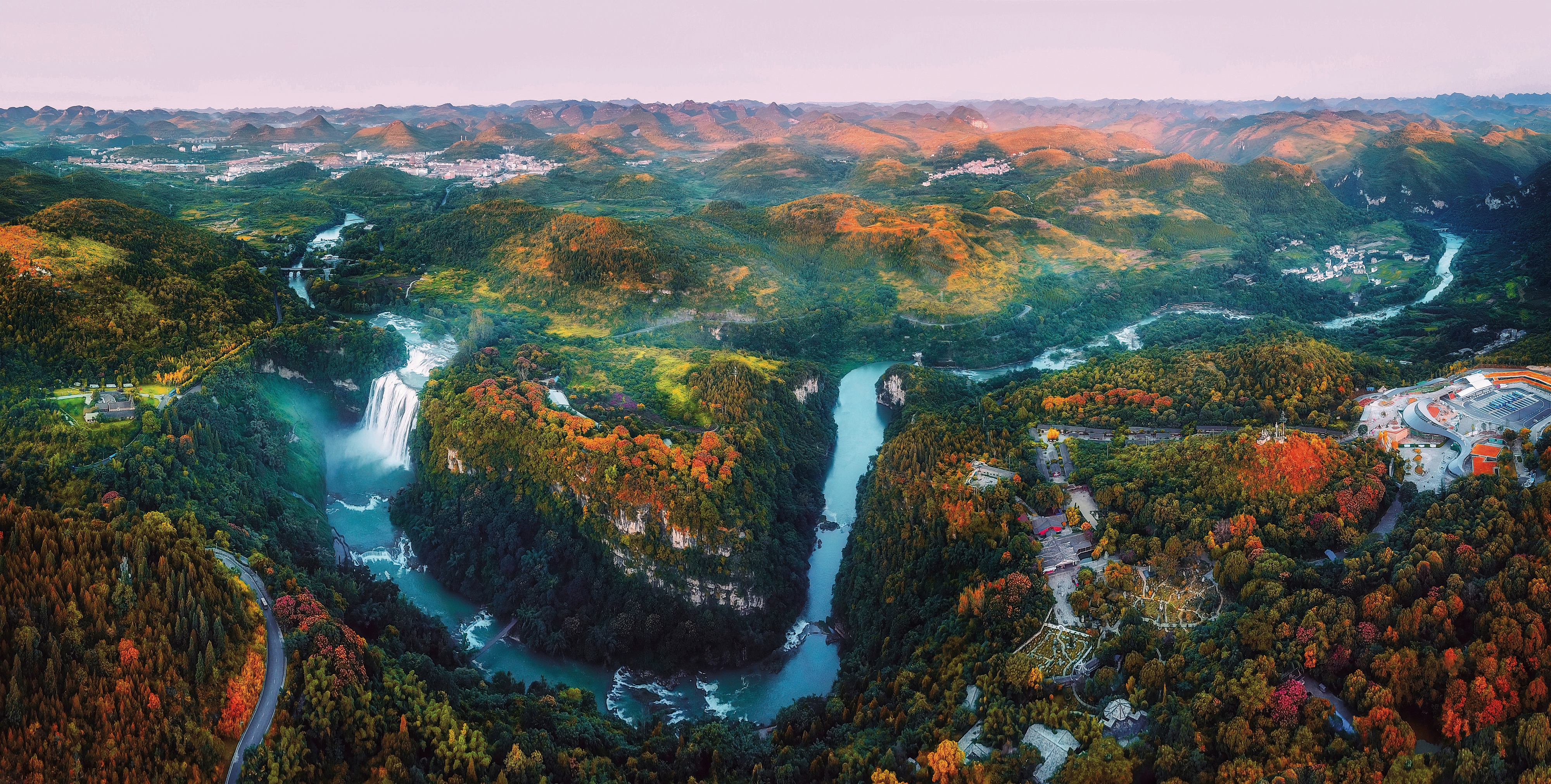 黃果樹大瀑布全景航拍圖。楊明亮 攝