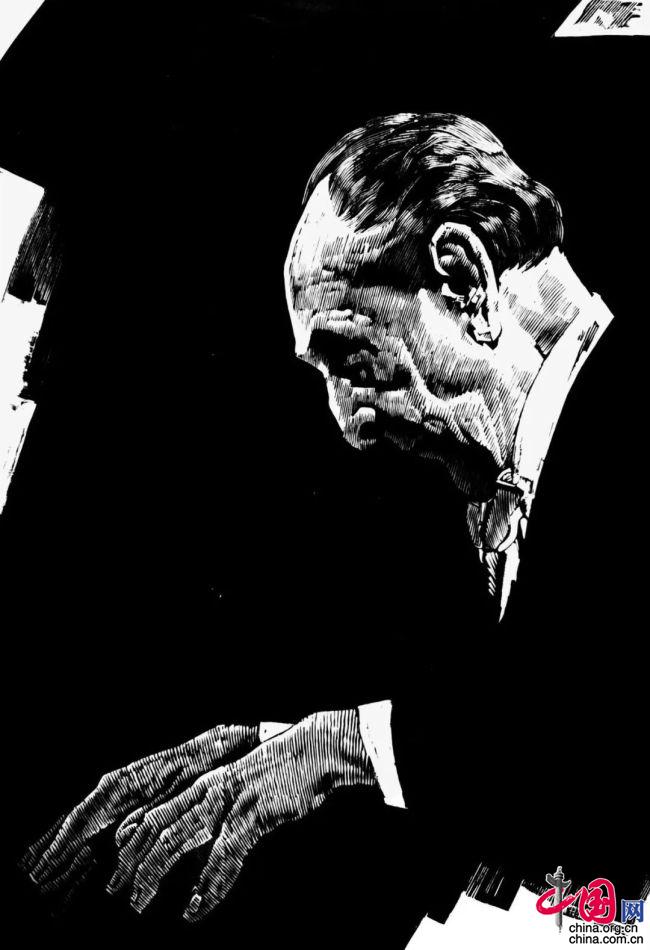 開幕式現場,中國文促會版畫院向黃土畫派美術館捐贈了版畫作品《霍洛維茨》。