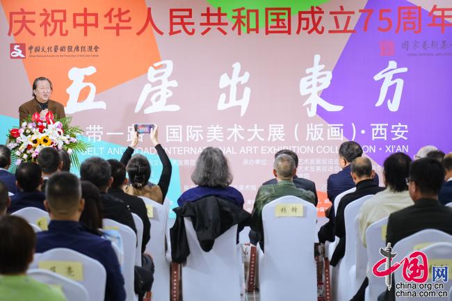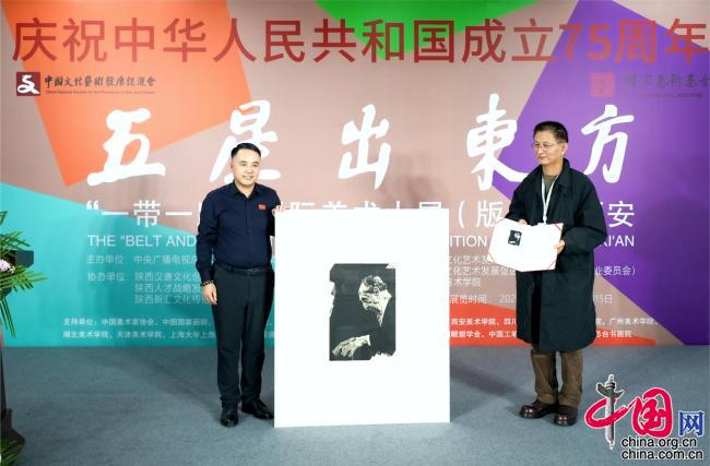 中國網10月22日訊 “五星出東方‘一帶一路’國際美術大展·版畫展(西安)”19日在西安市黃土畫派美術館舉辦。展覽聚集百余位畫家的120余件佳作,為慶祝中華人民共和國成立75周年獻禮!展期至11月15日。