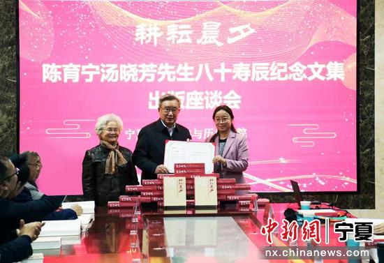 中新網寧夏新聞10月28日電 (記者李佩珊)近日,《耕耘晨夕——陳育寧湯曉芳先生八十壽辰紀念文集》出版座談會暨藏書捐贈儀式在寧夏大學舉行。來自區內外的高校、科研單位的30余位專家學者和師生代表出席了座談會。
