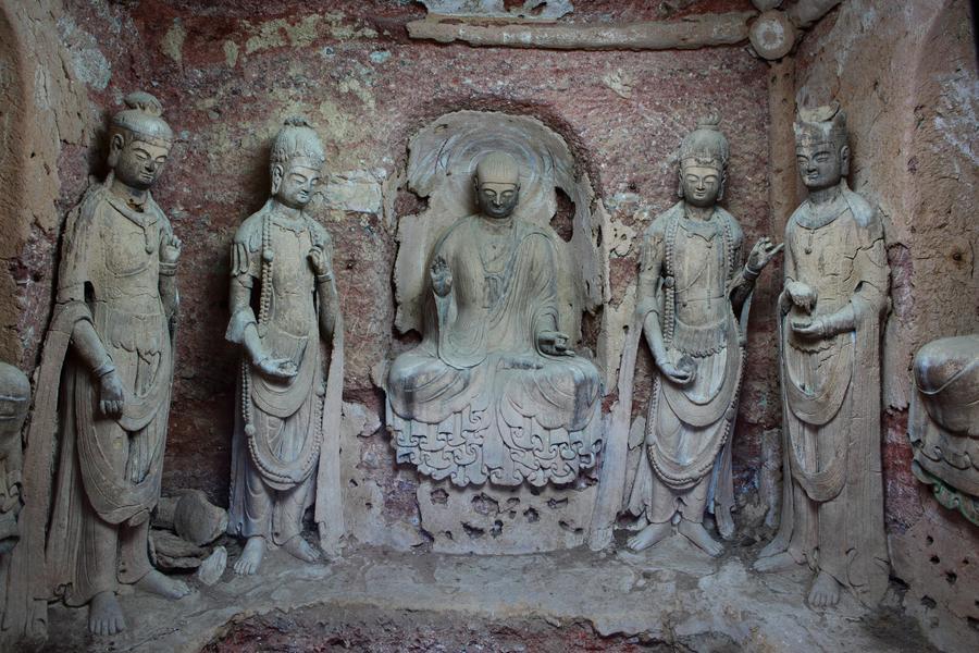 圖為麥積山石窟第121窟前壁的菩薩與弟子造像。新華社發