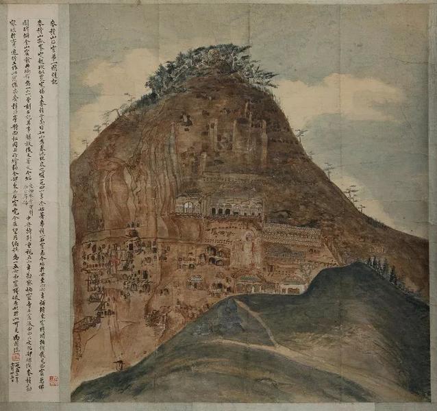 圖為馮國瑞繪制的麥積山石窟全景。新華社發