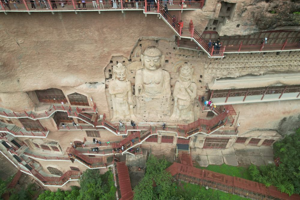如今,麥積山石窟作為“絲綢之路:長安—天山廊道的路網”的遺產點之一被列入《世界遺產名錄》。各類大型論壇、展覽在此舉辦,越來越多中外游客、研學團隊登上棧道,在與塑像的“對話”中感受跨越歷史的文化共振。