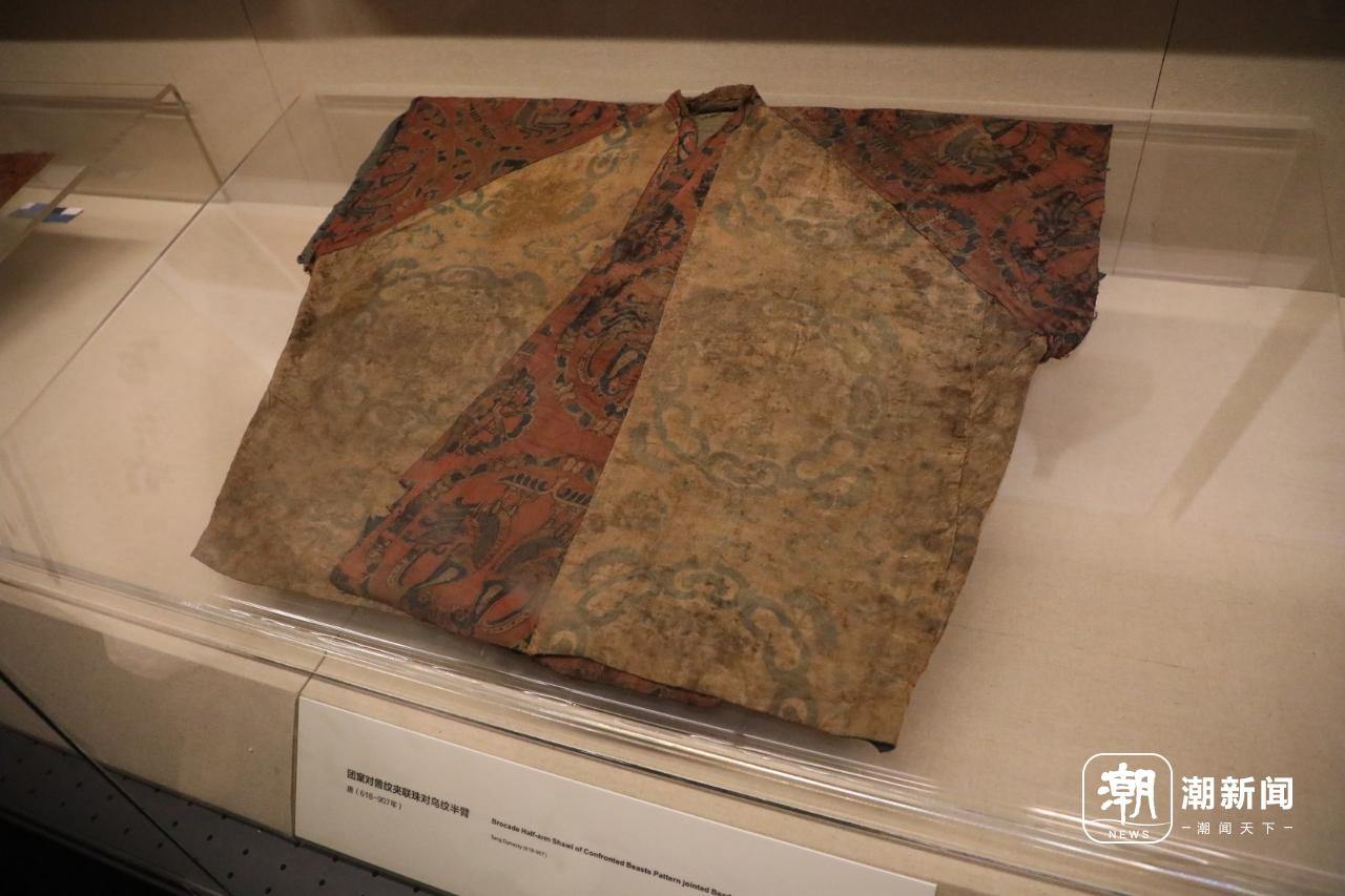 這是一件唐代的半臂,款式相當潮流,用的是蜀錦,上面的對鳥紋和聯珠紋是中西文化交流的產物 張迪 攝