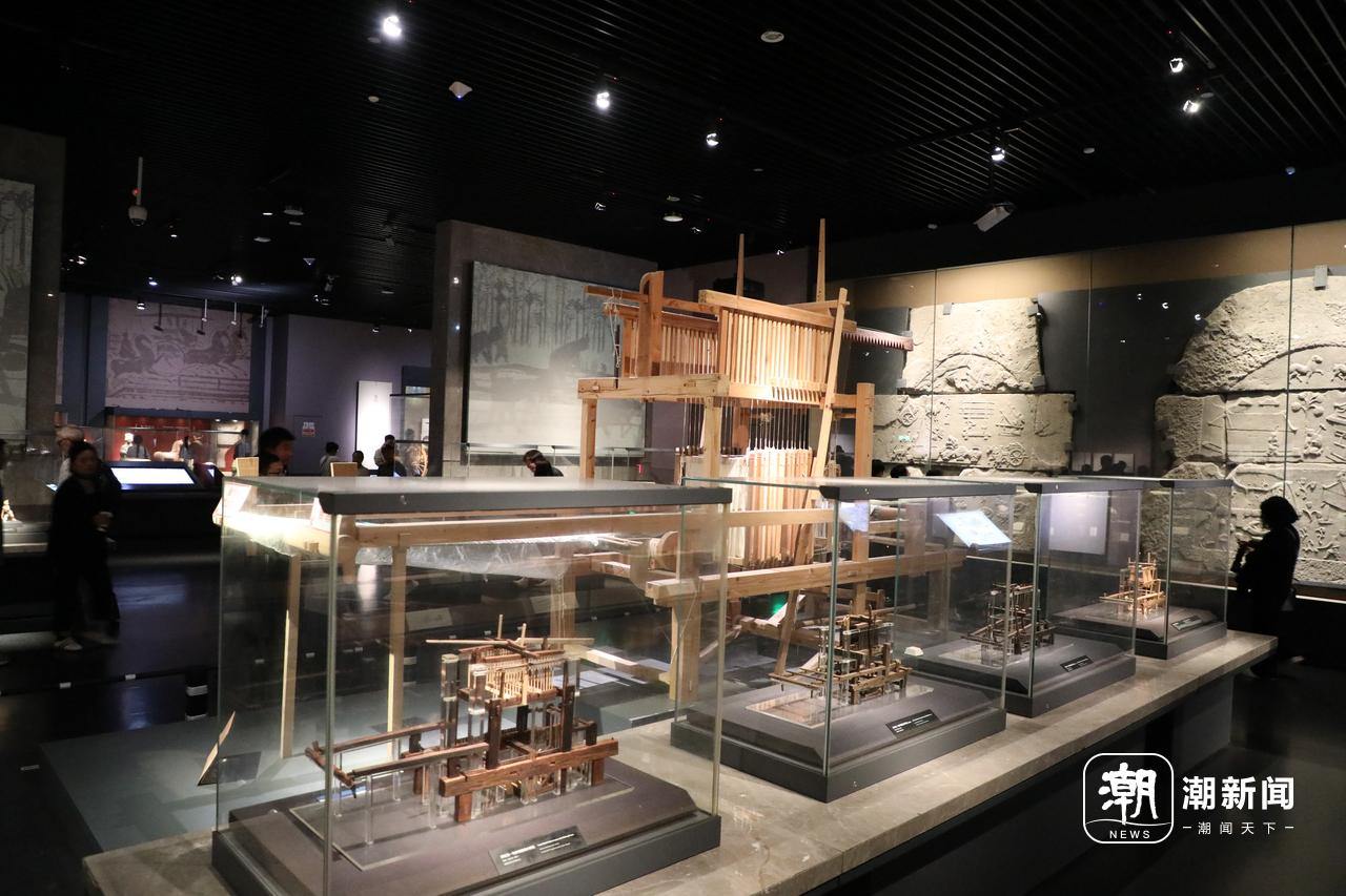 畫像石上,還有紡織畫面,以腰機進行平織的紡織技術當時在中國各地都在普遍發生,但成都博物館里陳列著兩臺出土于老官山的漢代織機模型原件。