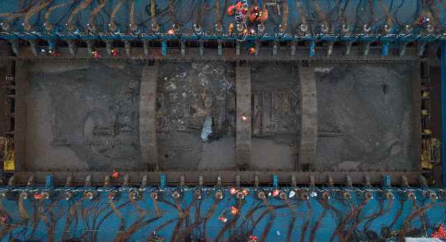 2022年11月21日,在國家文物局指導下,上海市文物局聯合多方力量采用“弧形梁非接觸文物整體遷移技術”將古船整體打撈出水,并遷移至上海船廠舊址1號船塢存放?!伴L江口二號”項目由此轉入考古和現場文物保護階段。今年9月,古船考古試掘工作正式啟動,這項工作計劃延續至2025年1月。