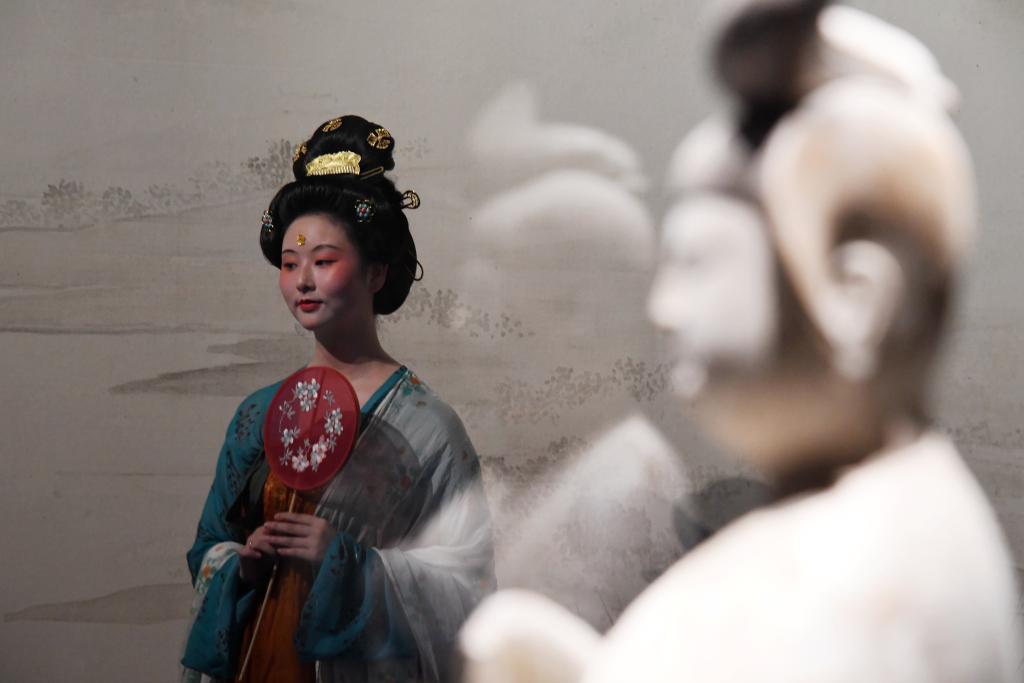 身著復原唐裝的演員在西安博物院為游客呈現唐朝生活風貌。新華社記者 李一博 攝