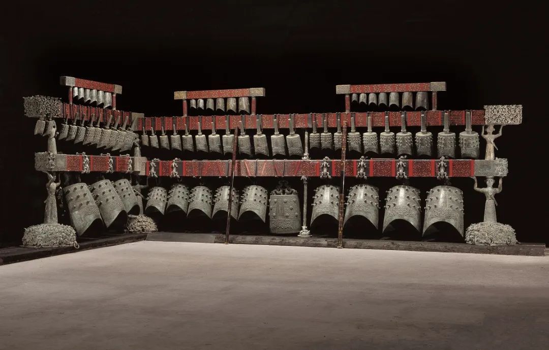 湖北省博物館的另一件鎮館之寶——曾侯乙編鐘由大小不同的扁圓鐘按照音調高低的次序排列,懸掛在巨大的鐘架上,用丁字形的木槌和長形的棒分別敲打銅鐘,能發出不同樂音。整套鐘體用渾鑄、分鑄法鑄成,代表了中國先秦禮樂文明與青銅器鑄造技術的最高成就。