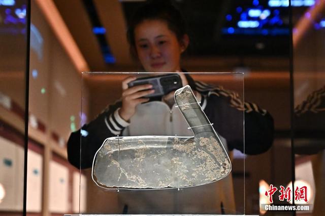 圖為民眾參觀陶寺遺址博物館館藏文物——石廚刀。中新社記者 韋亮 攝