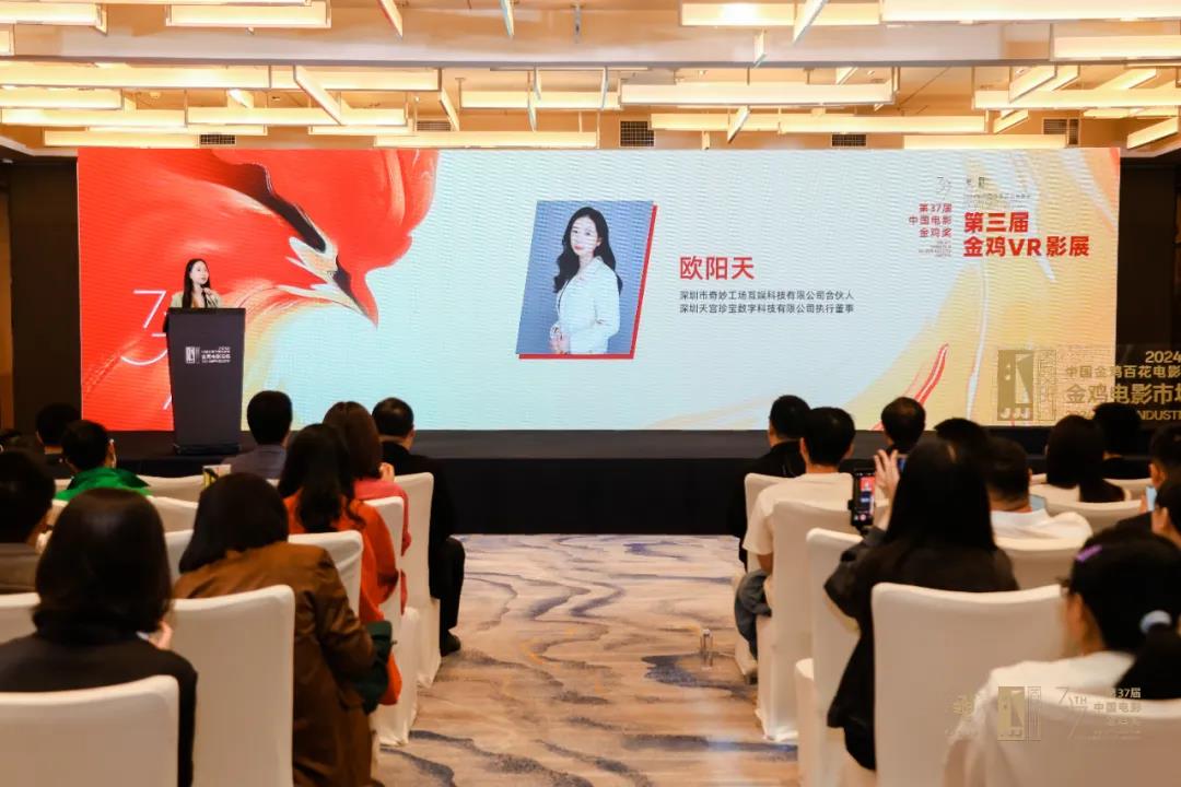 深圳市奇妙工場互娛科技有限公司分享了與金雞VR影展合作的初衷與愿景,布局VR體驗館等新型文商旅業態、AIGC內容創作、數字文娛軟硬件支持等領域,并與中國數字文化集團有限公司形成戰略合作,后續將通過多樣化的活動形式,為觀眾帶來前所未有的沉浸式觀影體驗,推動電影市場的新業態發展。