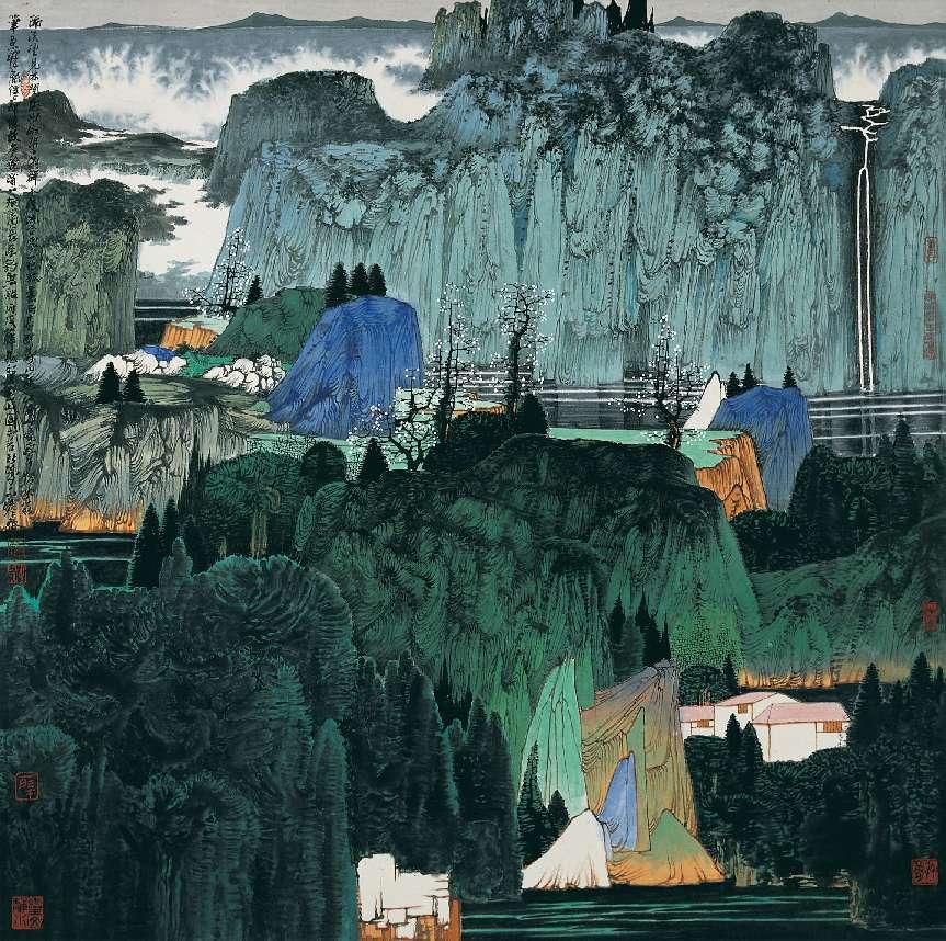薛亮山水畫以其獨特的心象山水風格著稱,他通過對傳統語言的整合與重構,開創了一種全新的視覺圖式。他的作品既保留了傳統山水畫的精髓,又融入了現代審美理念,展現出濃郁的時代感和現代感。在薛亮的筆下,北派的斧劈皴、釘頭皴與南派的披麻皴、解索皴,工筆青綠與水墨寫意,傳統神韻與現代意味,都被巧妙地融為一體,形成了一種獨特的藝術風貌。