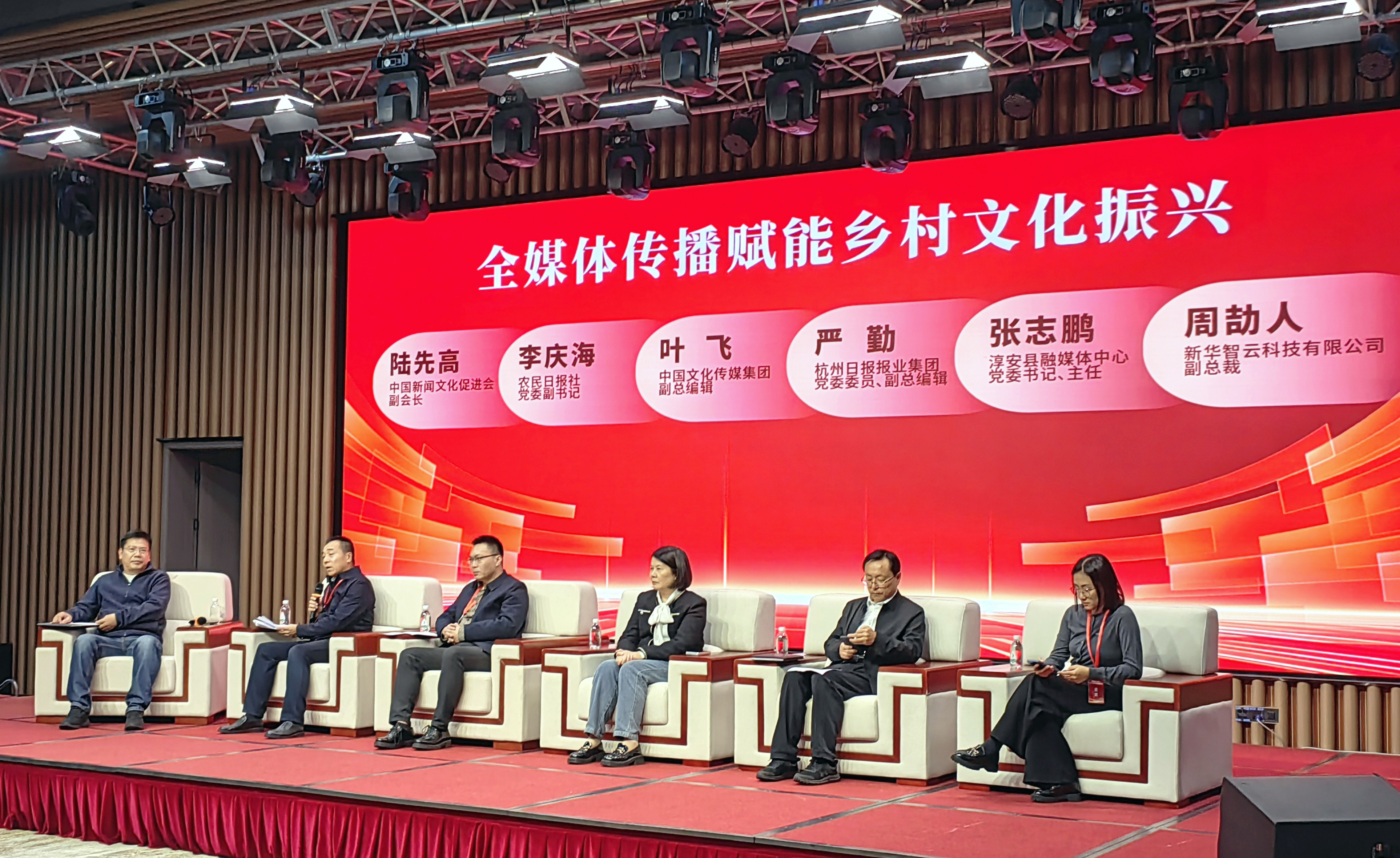 年會舉辦兩場網絡文化傳播與創新圓桌研討會?!叭襟w傳播賦能鄉村文化振興”的圓桌研討會由陸先高主持。農民日報社黨委副書記李慶海,中國文化傳媒集團副總編輯葉飛,杭州日報報業集團黨委委員、副總編輯嚴勤,淳安縣融媒體中心黨委書記、主任張志鵬,新華智云副總裁周劼人,從發揮中央“三農”主流媒體優勢為鄉村文化振興蓄勢賦能、以行業傳媒之力服務鄉村文旅融合發展、當好鄉村文化傳播官、文化數字化賦能鄉村文化傳播等方面作了主題發言。