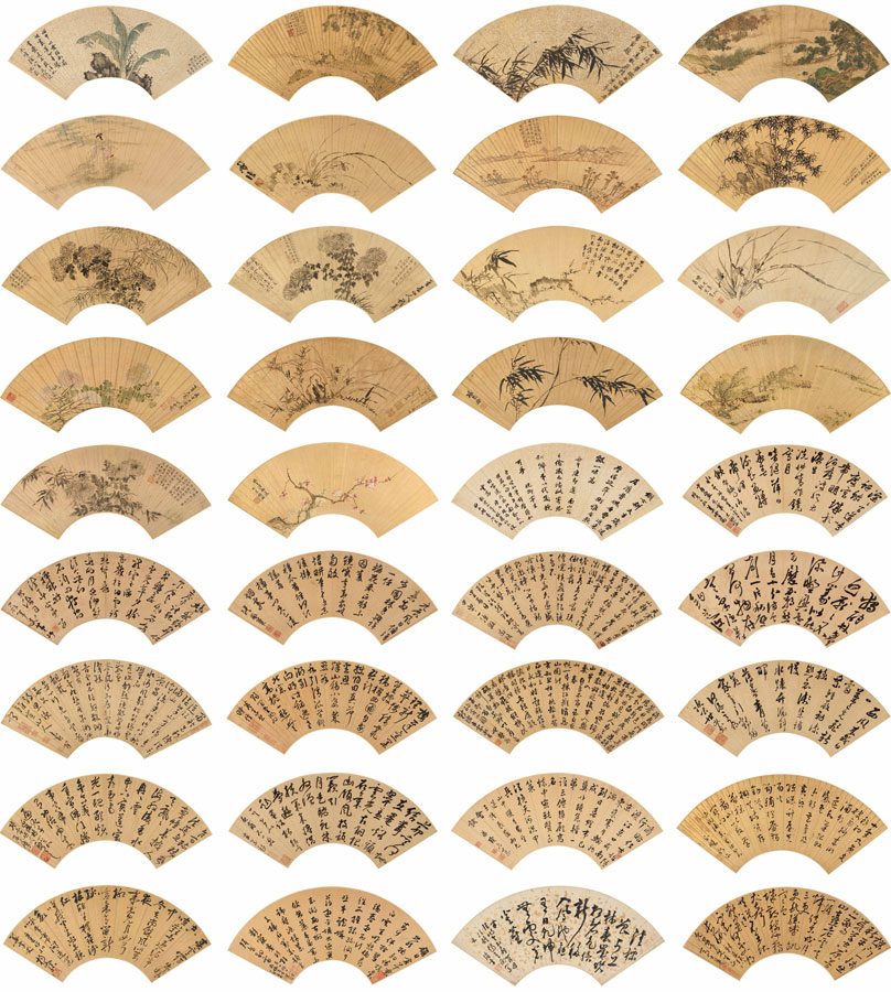 沈周、文徵明、唐寅、仇英等30余家 明人書畫扇集二冊