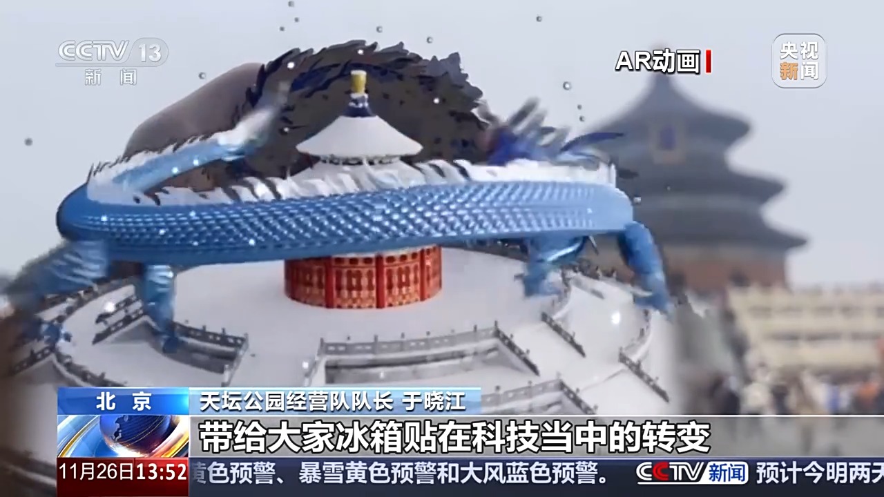 天壇公園經營隊隊長于曉江:我們從二維碼的設計到最后冰箱貼的展示,帶給大家冰箱貼在科技當中的轉變。這樣的話能給大家在一個小小的冰箱貼、在一個小小的櫥窗里,做出來一個大的世界。