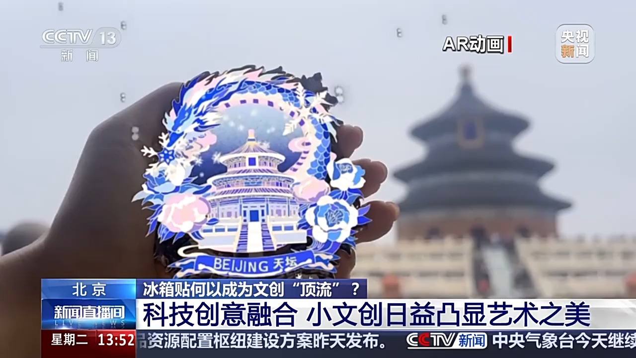 這個冬季元素的AR冰箱貼,設計靈感來自雪后天壇,手機掃描冰箱貼背后的二維碼即可觀看AR動畫,雪中祈年殿就能清晰立體地呈現在眼前。