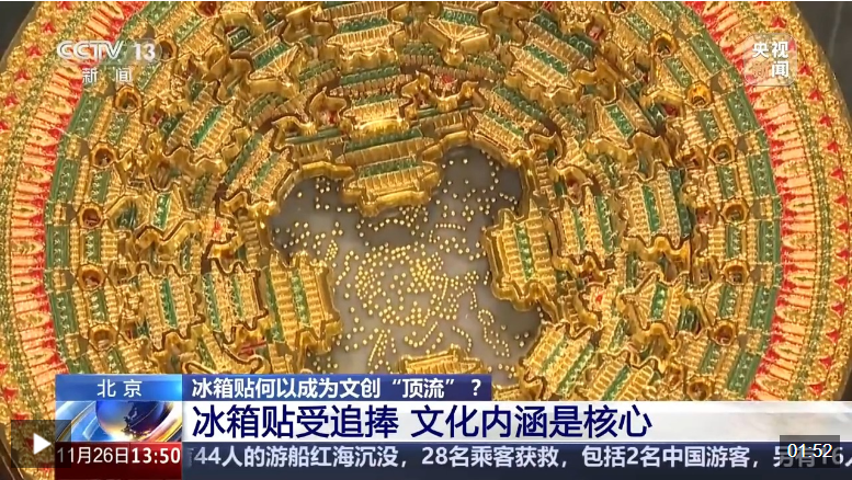 中國藝術研究院雕塑院副教授劉銳:它的美學元素凝固在一個小小的冰箱貼上,讓我們在生活中能感受到古建筑帶給我們的美感。當然可以在假日休閑的時候去現場去看實物,但我們平常在家的時候也會感受到這種古建筑的美。它是一個濃縮,越來越貼近古代我們珍貴的文化傳統元素。給消費者非常高的美學享受,這就是藝術品的價值。
